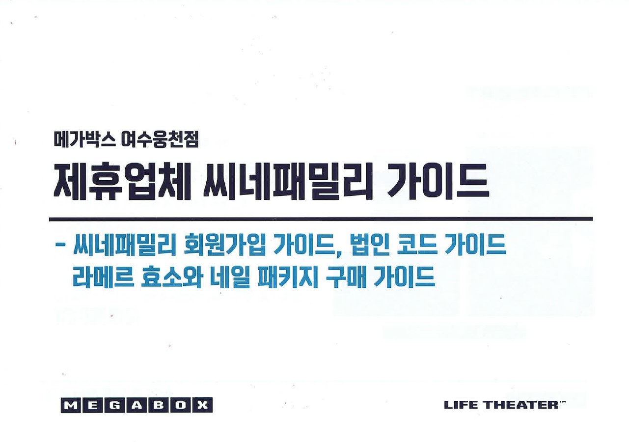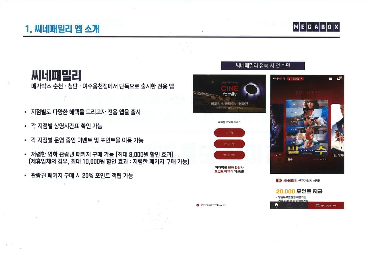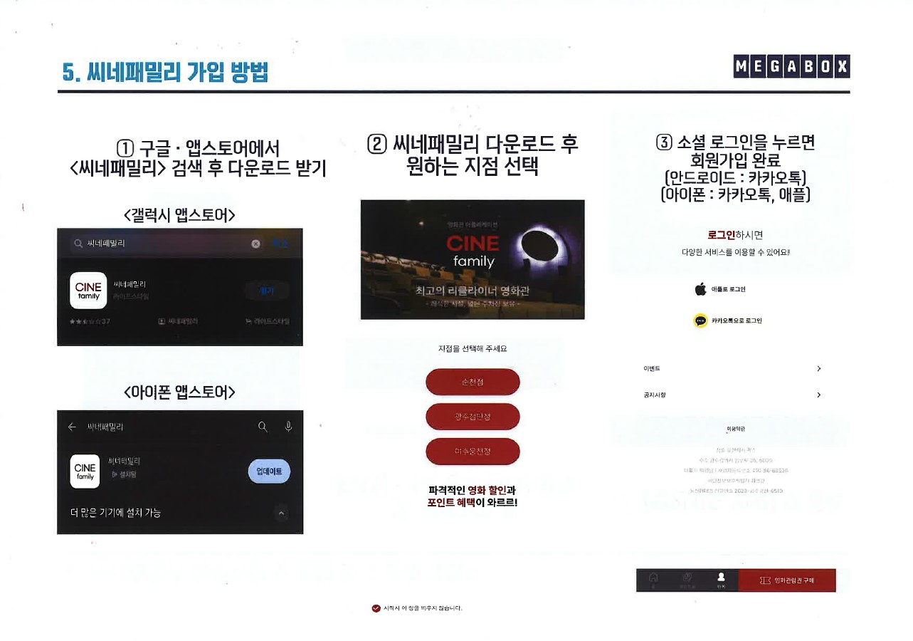 씨네패밀리 어플 제휴 혜택 안내 (메가박스 순천·광주첨단·여수웅천점)
