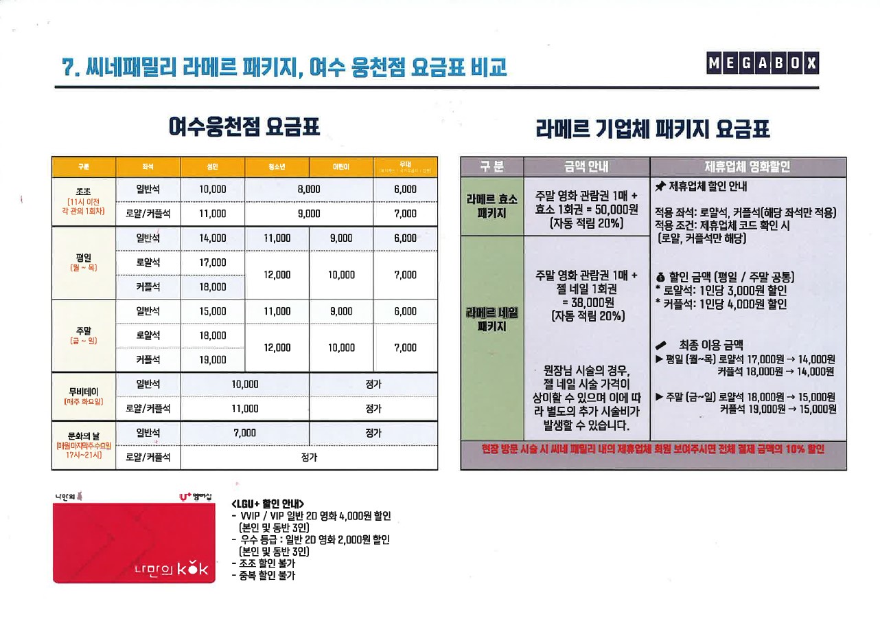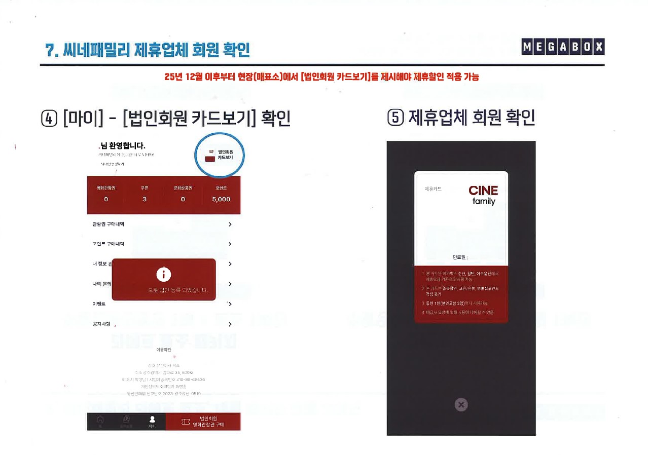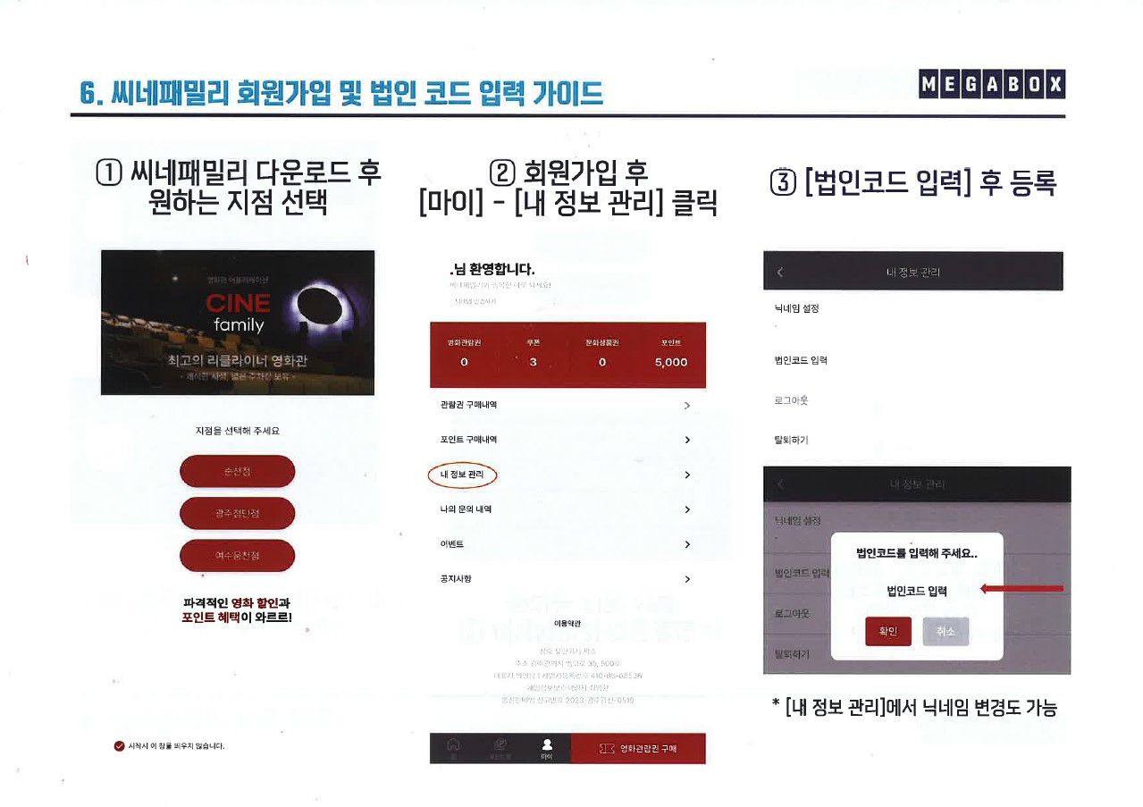 씨네패밀리 어플 제휴 혜택 안내 (메가박스 순천·광주첨단·여수웅천점)