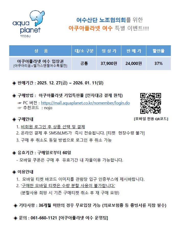 12.27 ~ 01.11 아쿠아플라넷 여수점 특별판매 안내